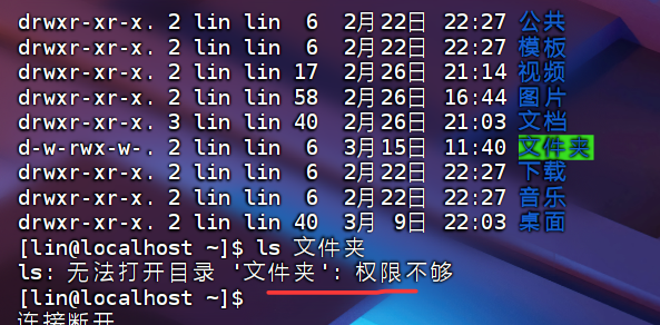 ls就是读的权限,咱们没有给用户读的权限,所以他读不了