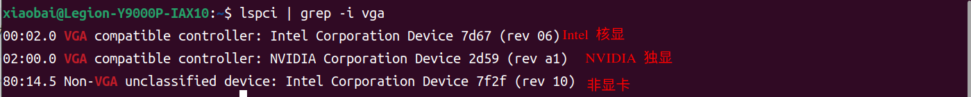# lspci 列出所有 PCI 设备,| 将上一条命令的输出作为下一条命令的输入,grep 搜索关键字 vga,-i 忽略大小写