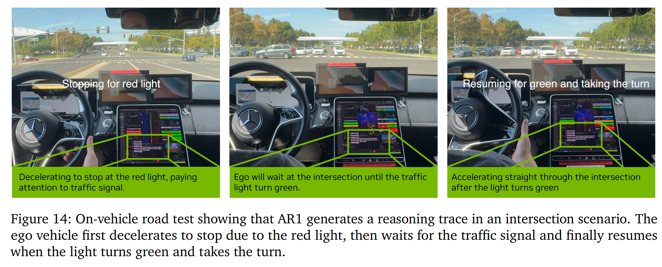 实车路测:AR1 已成功部署在测试车上,能够自主应对复杂的城市道路场景(如红绿灯识别、无保护转弯、绕行建筑区) 。