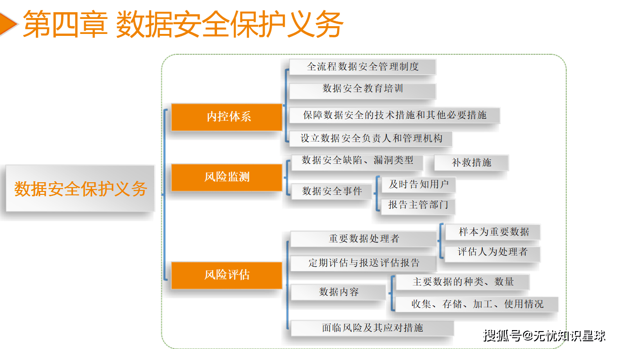 - 责任主体明确:明确了数据处理者(包括收集、存储、使用、加工、传输、提供、公开等所有环节的主体)的安全主体责任,实行"谁处理、谁负责"的原则。