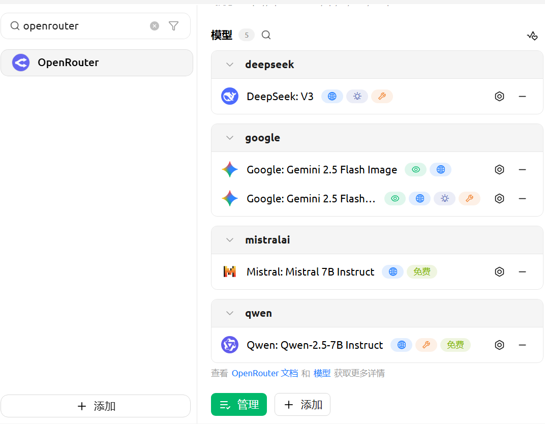 | OpenRouter [选择:你的大模型,这里我选择的是OpenRouter]