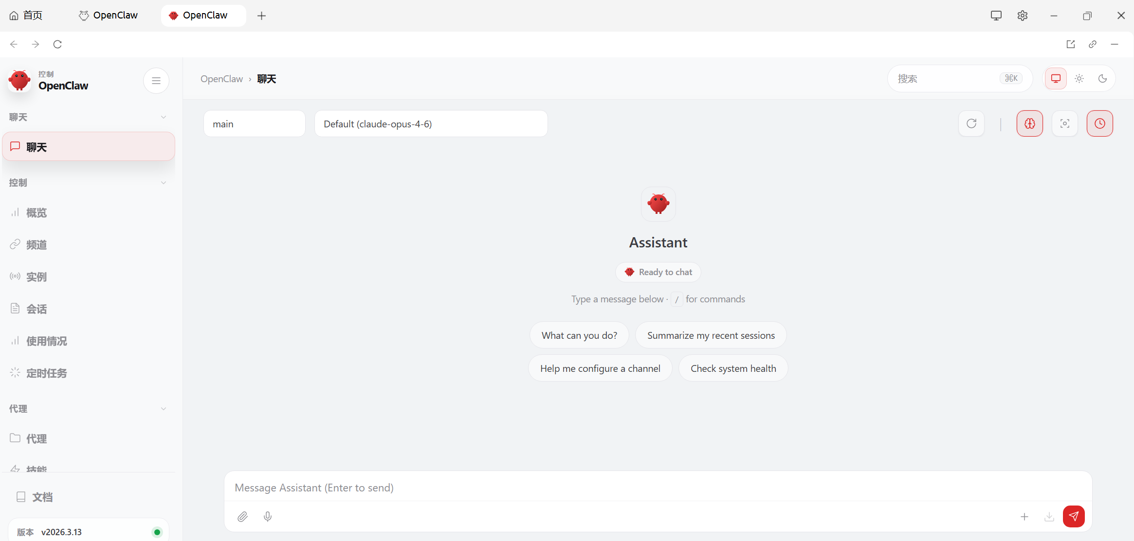 - 刷新OpenClaw页面,在页面中输入,可正常聊天