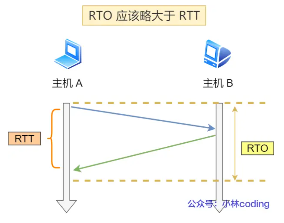 以时间为驱动,当客户端在一定时间内没有收到回复时就认为丢包了,启动重传。RTT:客户端正常一次发送接受的时间。 RTO:启动重传的时间,就是说客户端在发送之后的 RTO 秒内没有收到回复,认为它超时了启动重传。 RTO 应该设置的略大于 RTT,如果 RTO 设置的太大,那么会浪费时间,设置的太小又会引发不必要的重传,加重网络负担。