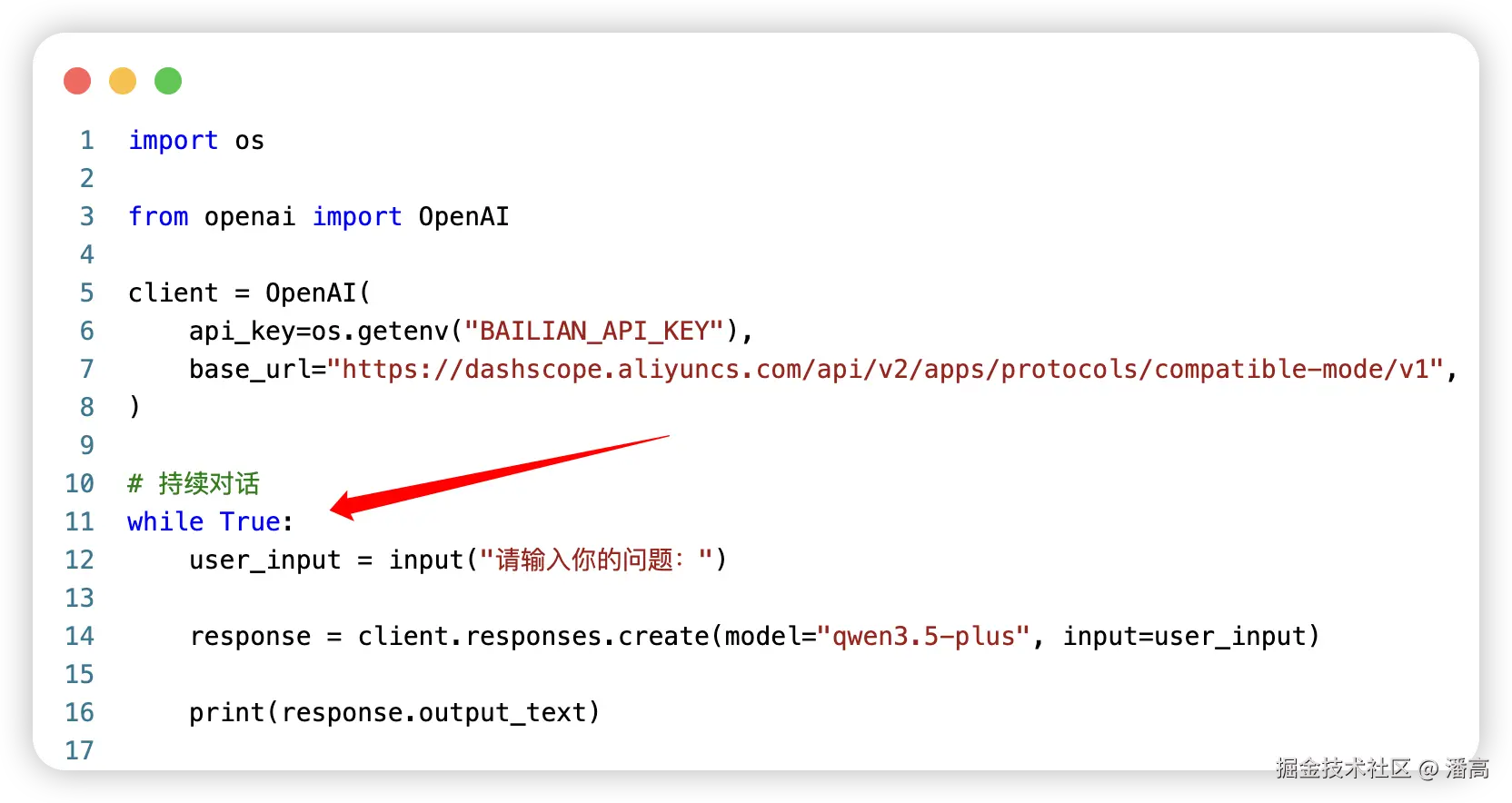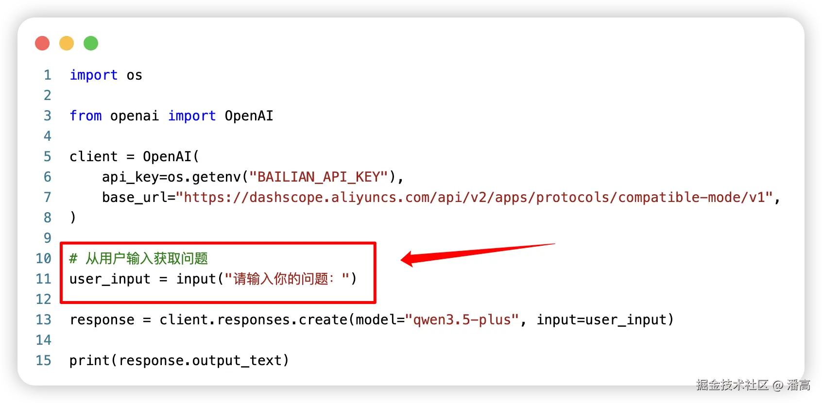 response = client.responses.create(model="qwen3.5-plus", input=user_input)