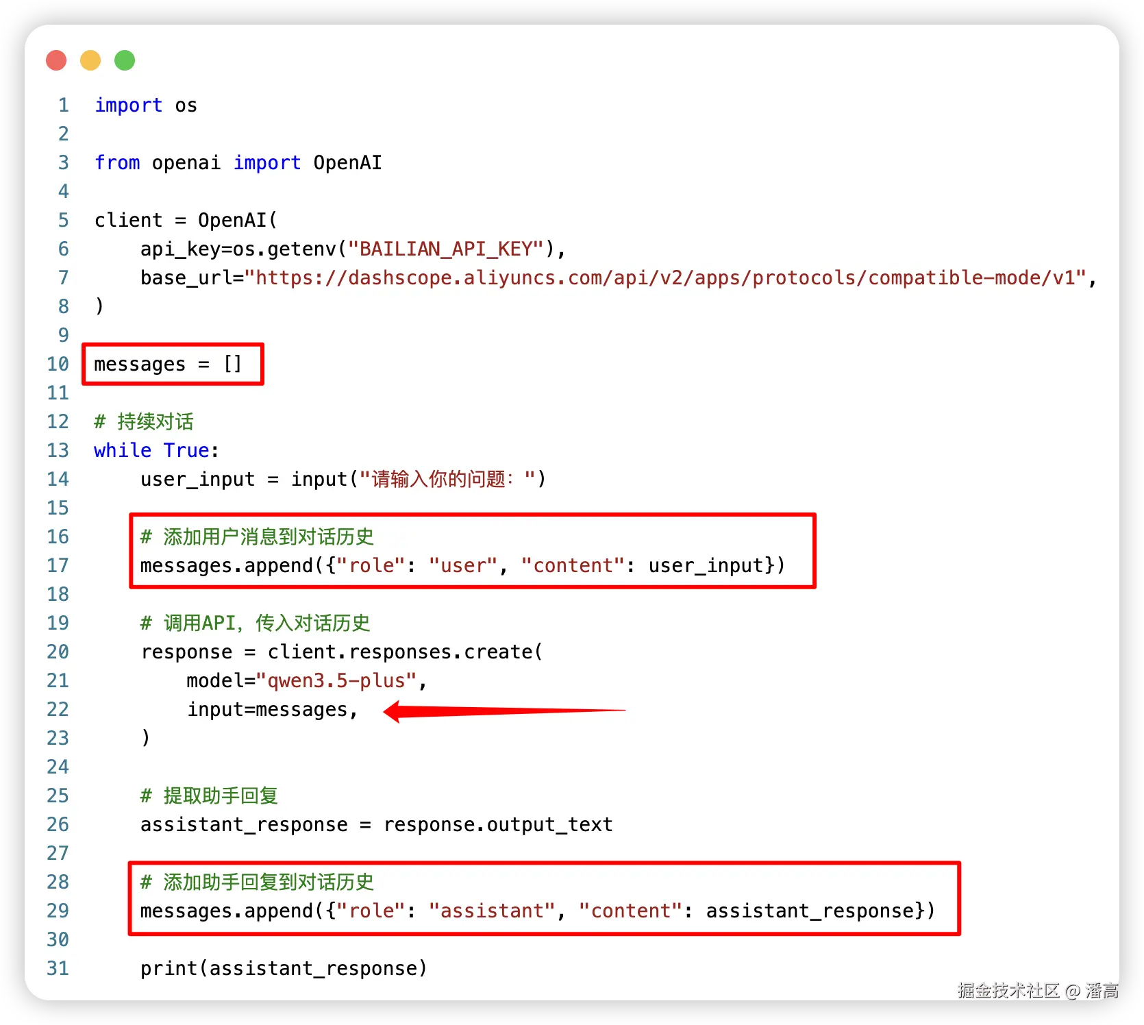 # 添加助手回复到对话历史