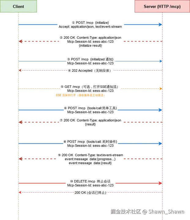 | 会话终止 | 通过 DELETE /mcp 主动结束会话 |