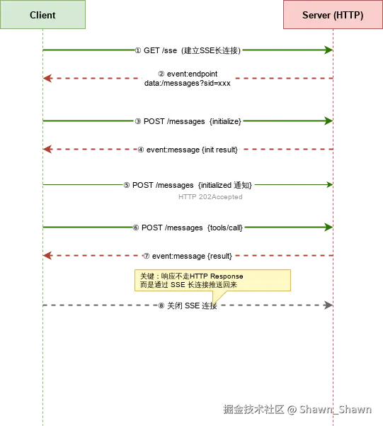 ⚠️ SSE 传输在MCP 协议 2025-03-26 版本中已被标记为 deprecated(弃用) ,推荐使用 Streamable HTTP 替代。