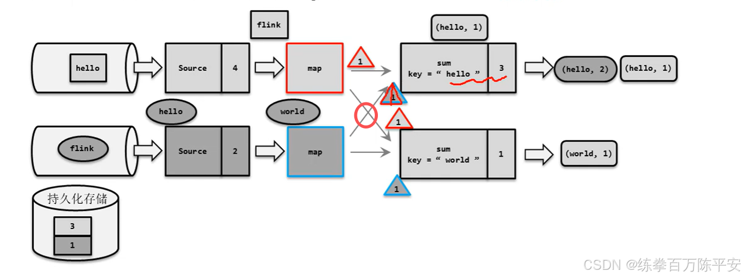 - 屏障之后的数据:状态变更不会体现在当前检查点中,需保存到下一个检查点。
