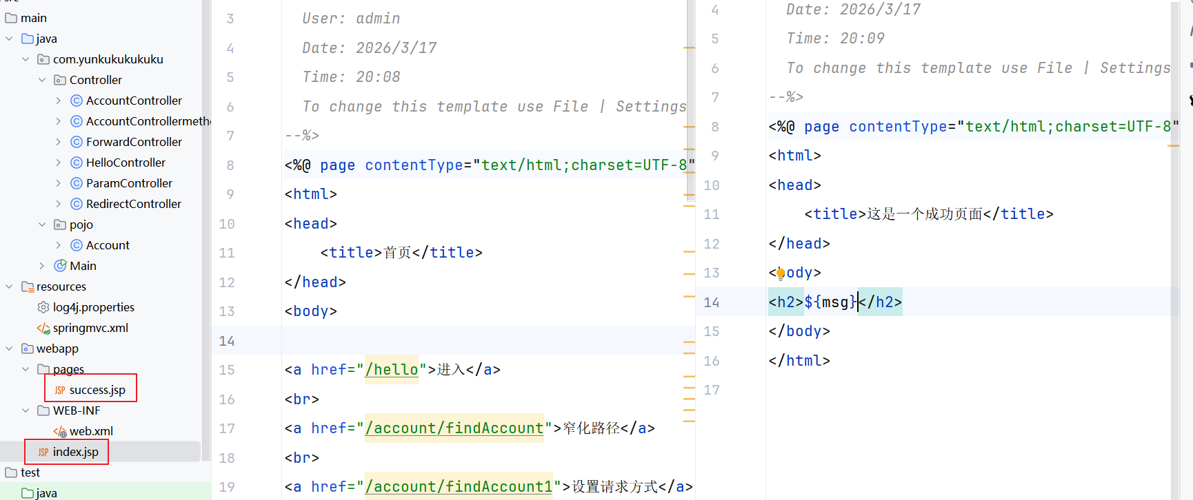 * - "success" 是「逻辑视图名」,不是直接的 JSP 路径,需由 ViewResolver(视图解析器)解析