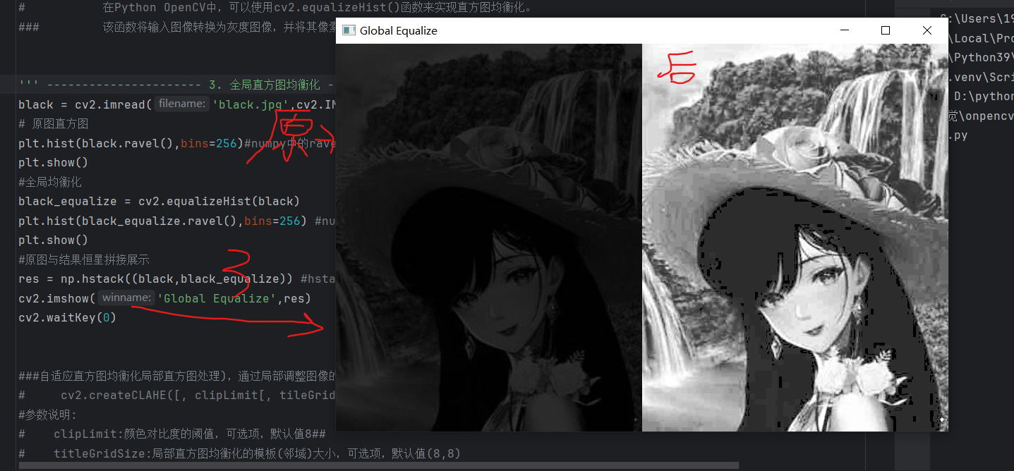 #直方图均衡化:直方图均衡化是一种图像增强技术,它可以通过增加图像的对比度和亮度来改善图像的质量。