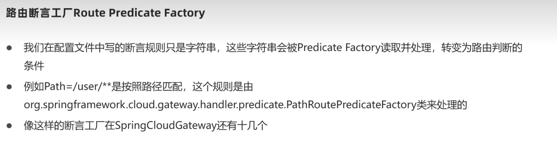 - Path=/user/** #这个是按照路径匹配,只要请求以/user开头,就符合要求