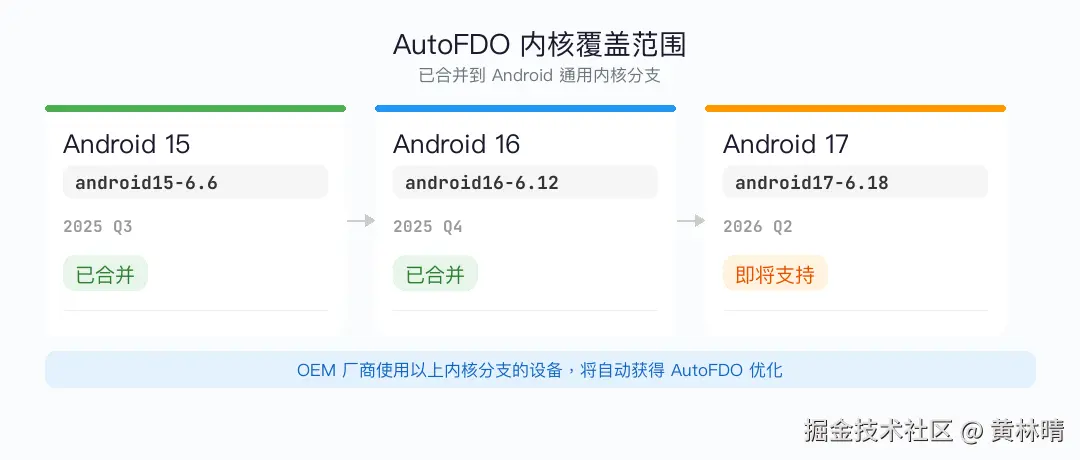 如果你在做性能基线测试(Baseline Profiles、Macrobenchmark),内核更新后基线会变。注意区分是"你的优化起效了"还是"内核帮你优化了"。