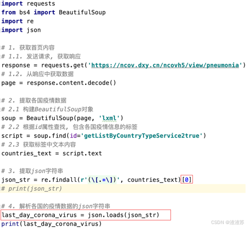 - 从各国疫情信息中提取各国疫情的json字符串
