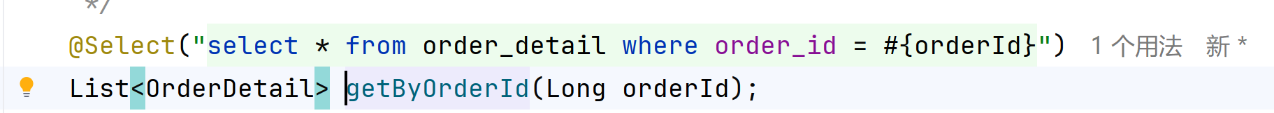 List<OrderDetail> orderDetails = orderDetailMapper.getByOrderId(orderId);