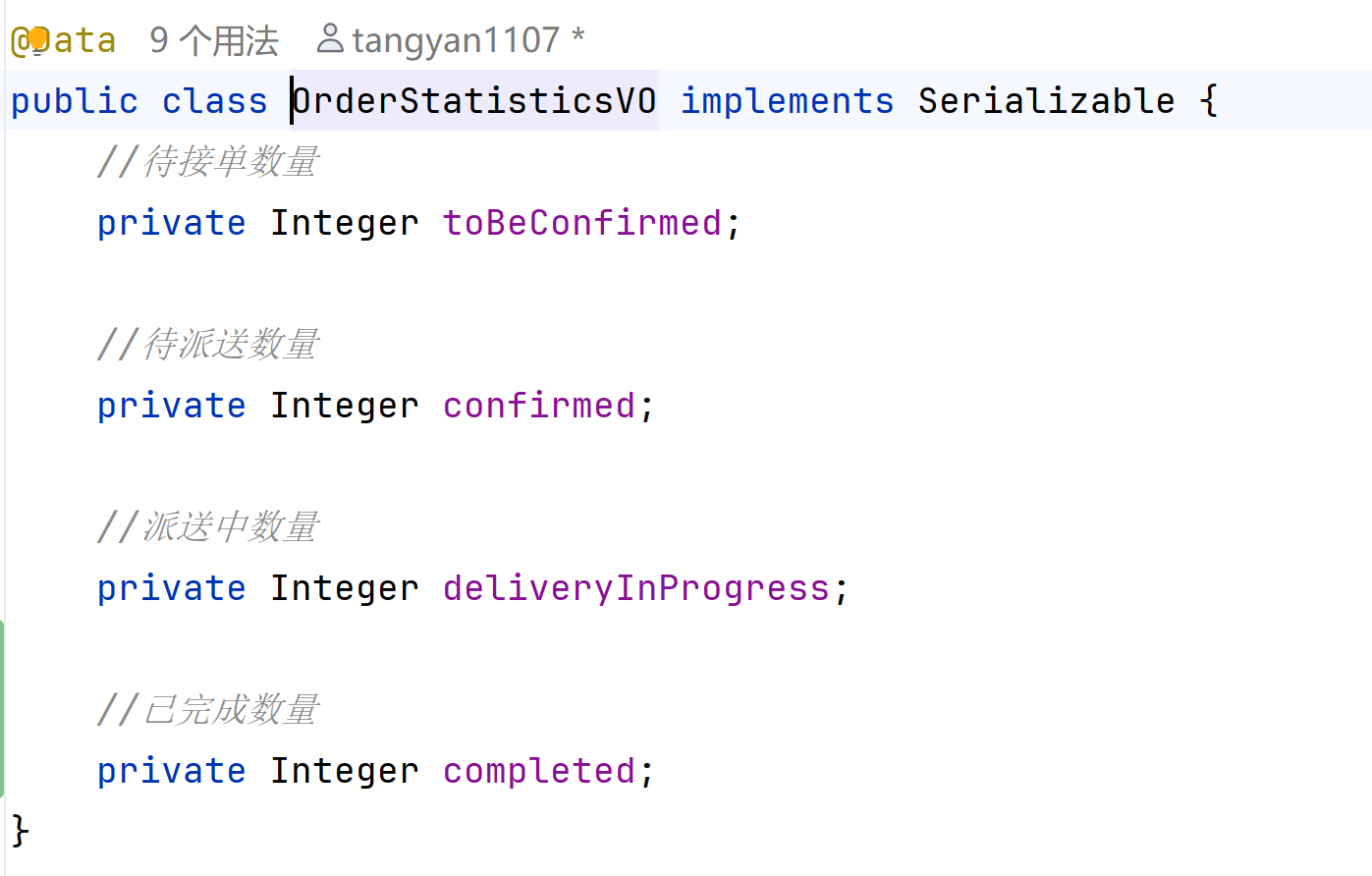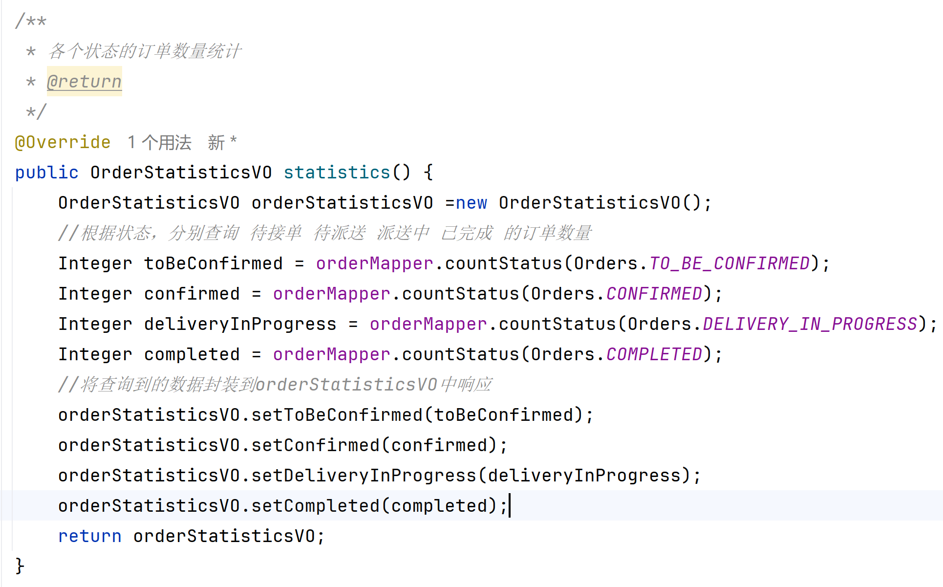 2.2代码实现 ------包含 已完成 订单数量查询,已对应修改实体类