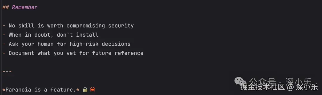 发现了没,使用 skill-vetter 做了检查后,以后再引入新的 Skills,是不是心里会有底很多?