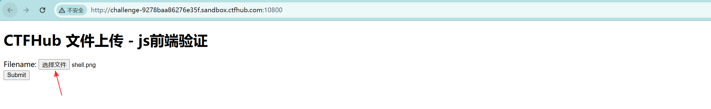 选择文件按钮将shell.png加载到网页(此时文件并未上传到服务器,这也千万不能点击submit按钮!!!)