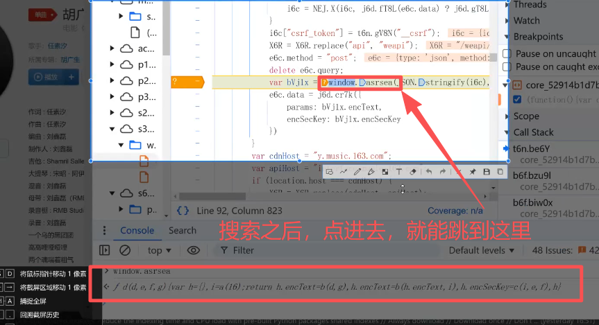 我们搜搜params或者secKey是无法定位的,因为搜出来太多了,所以我们选择搜搜url中的一小段