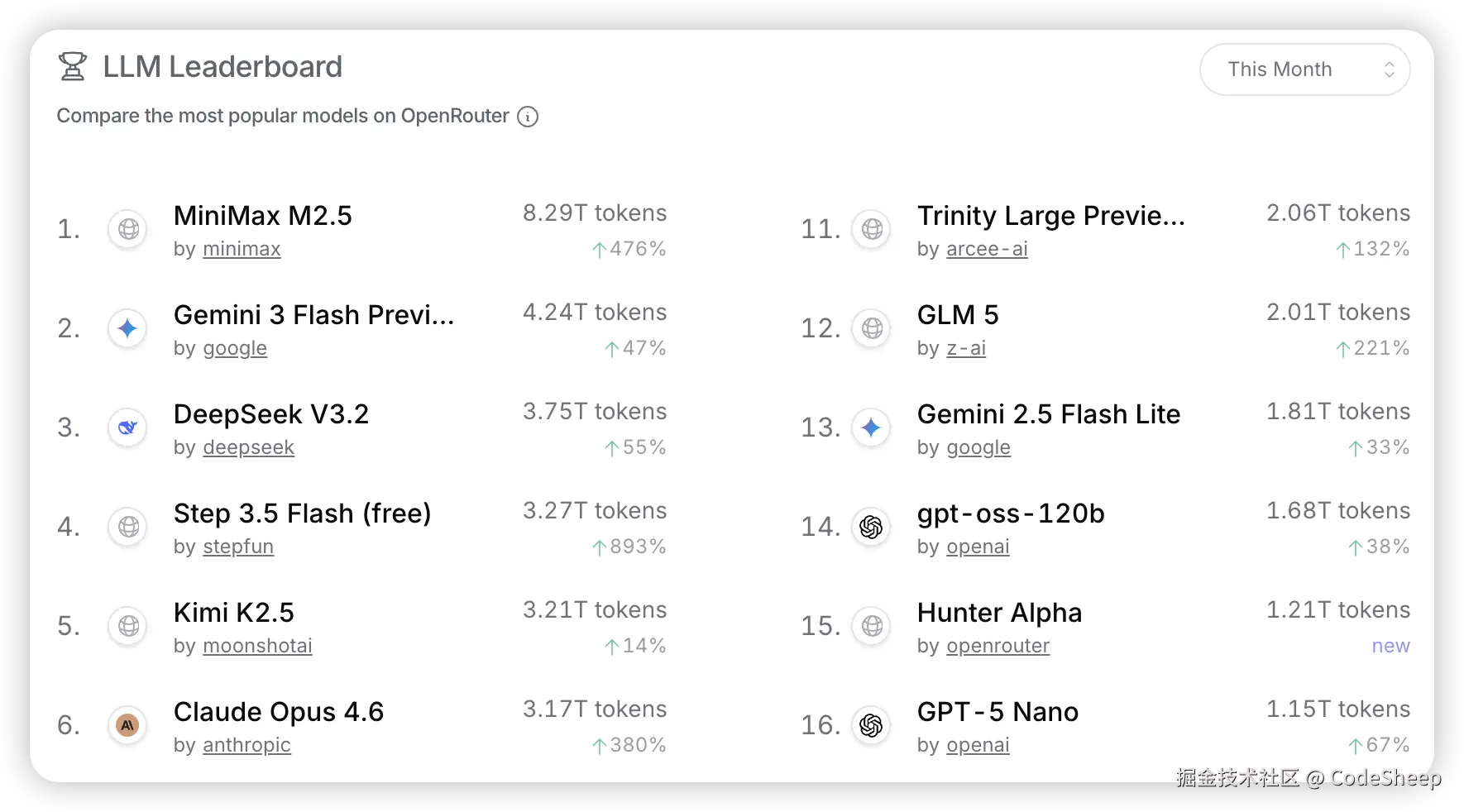 在这个榜单中,MiniMax 曾一度冲到了前三,非常之顶。