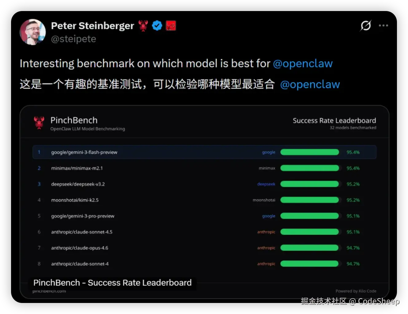 前两天我们这里不是刚分享过一个专为龙虾而生的 OpenClaw 大模型适配榜单 PinchBench 嘛。