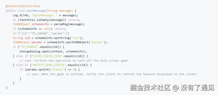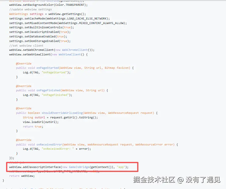 - webView.addJavascriptInterface(new GameJsBridge(this), "app"); 注册回调内容