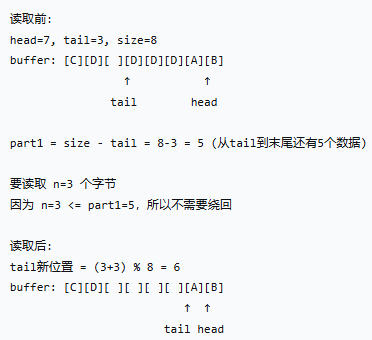 main()函数的while(1)循环中,从环形缓冲区里面把数据读出来,解析