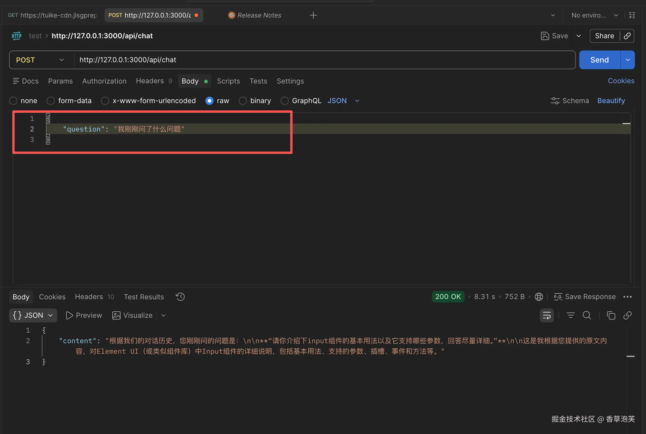 第 21-27 行,遍历流式数据,逐块提取内容并通过 res.write() 实时返回给客户端。