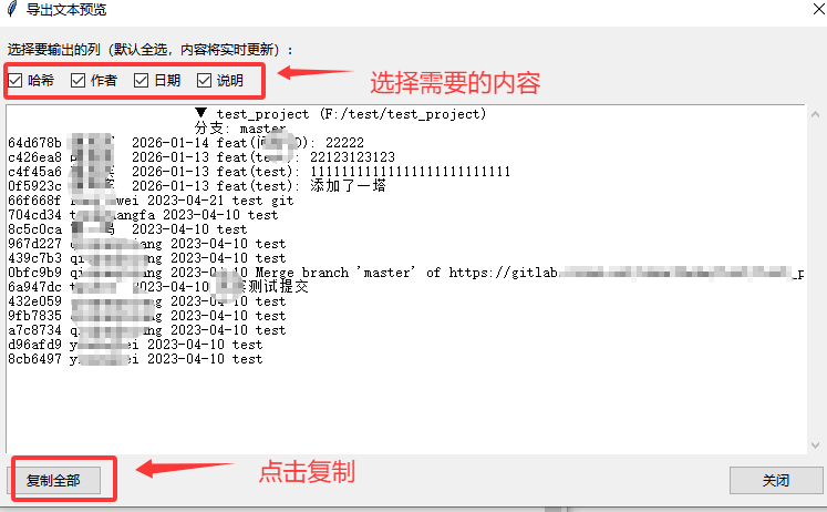 当然,可以通过手敲指令来获取,也可以通过插件例如git_len来获取。但是如果我们要同时获取多个仓库的git提交记录时,就比较麻烦了,如果每个仓库都手敲,1、2个还好,如果有10个,那也挺麻烦的。而且记录也无法复制,不方便操作。所以我搞了一个拉取多个仓库git提交记录的上位机,废话不多说,展示。