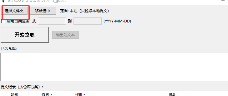 可以通过"选择文件夹"添加多个git仓库到软件中。