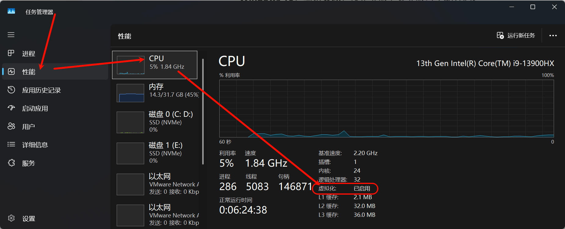这里的虚拟化需要显示为已启用