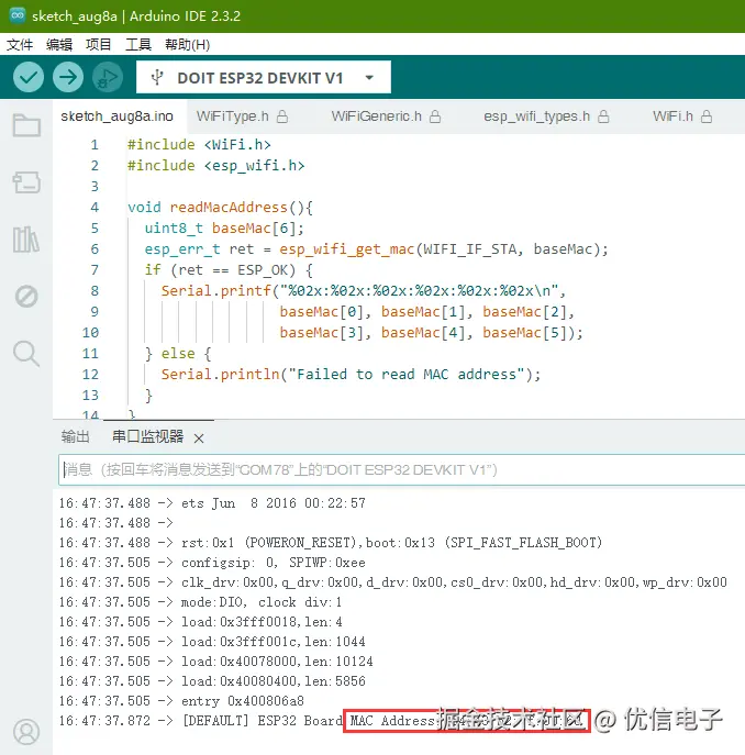 读取ESP32接收方Receiver的MAC地址