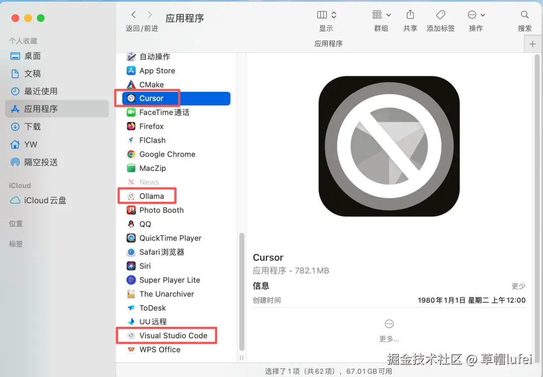 搜了一下相关问题的原因,原来是Cursor,VSCode,Ollama使用的Electron移除了对 macOS 11老版本支持了,然后Cursor之类的自动更新,就不能用了