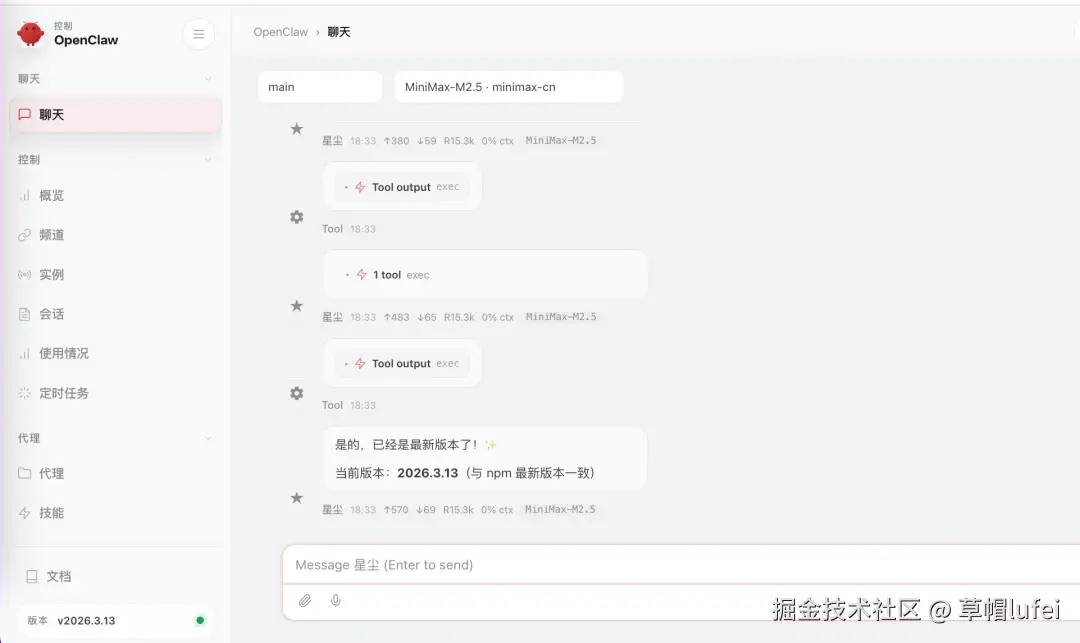 因为之前OpenClaw在页面上升级后服务挂了,后来也没顾上看什么情况,昨天晚上执行了一下 openclaw gateway 命令起了一下,就也没理了