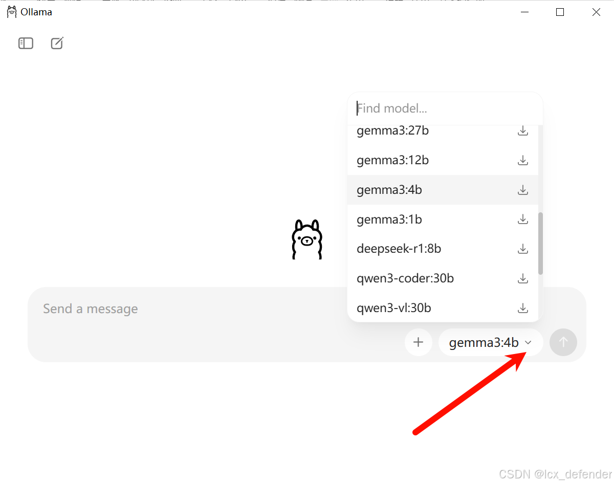 安装完毕后弹出的对话框里有ollama平台能够下载的所有大模型,从中选择你需要的模型