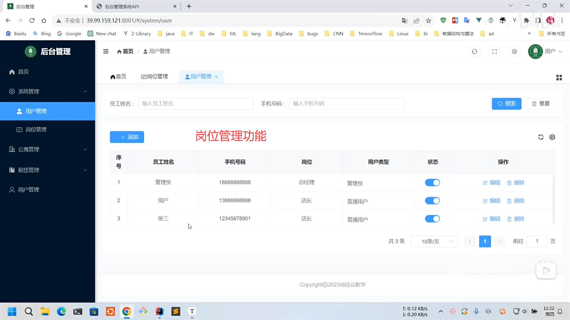 - 公寓与房间管理:管理员可以对公寓信息(如名称、地址、配套设施)和具体的房间信息(如租金、户型、状态)进行增删改查。