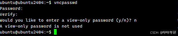 由于 Ubuntu 24.04 的兼容性变化,推荐使用 TigerVNC 而不是 TightVNC。