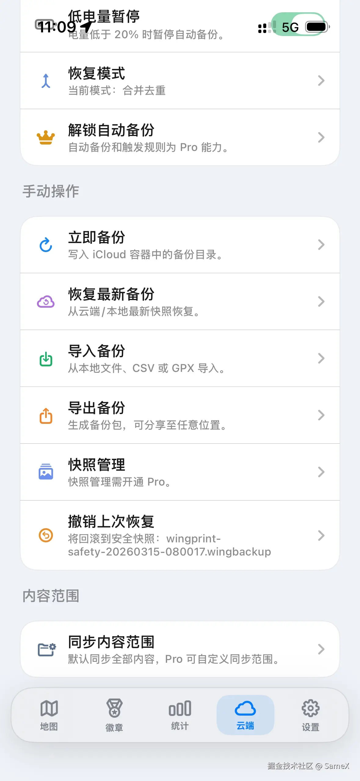 另一个花时间很多的模块是云备份和恢复。这部分最容易出事故的,不是"同步失败",而是"同步成功但把用户本地数据弄坏了"。