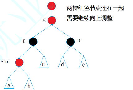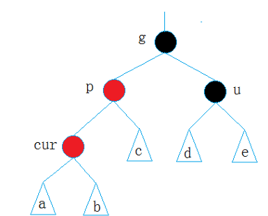 情况三: cur为红,p为红,g为黑,u不存在/u存在且为黑