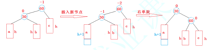 - 新节点插入较高左子树的左侧---左左:右单旋