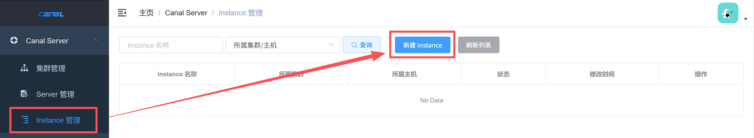 在浏览器的"Instance 管理"界面中单击"新建 Instance"按钮。