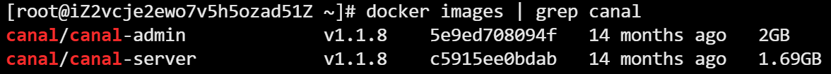 shelldocker load -i canal-server-v1.1.8.tar docker load -i canal-admin-v1.1.8.tar -