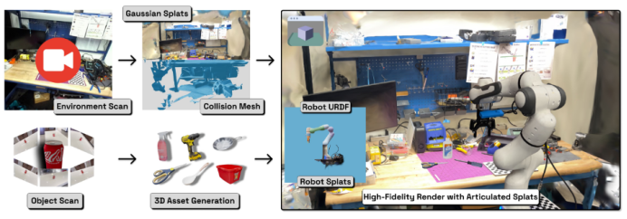 通过专门开发的图形用户界面(GUI),用户可以在 5 分钟内完成场景合成 。物体模型则采用 TRELLIS 等生成模型从单张照片中快速构建,极大地降低了资产创建的门槛 。