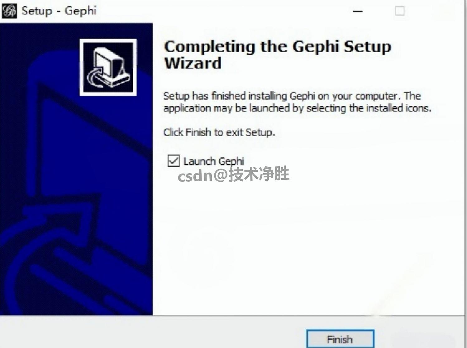 12.完成安装 :安装完成后,勾选 "Launch Gephi 0.9.2"(立即启动软件),点击 "Finish";