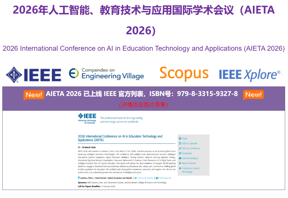 2026年人工智能、教育技术与应用国际学术会议(AIETA 2026)