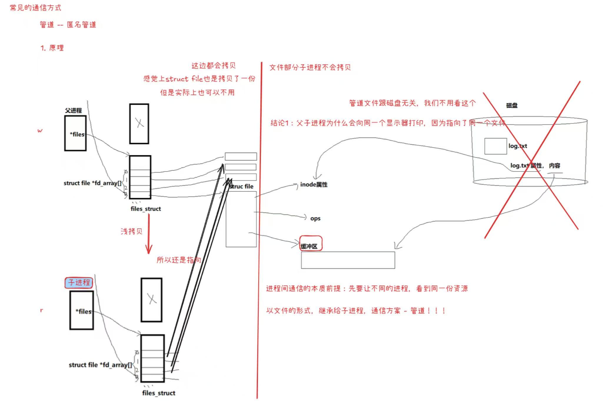 file结构体指向同一个inode的内核缓冲区,读写操作是进程与内核缓冲区之间的数据拷贝; - 匿名管道是半双工的,仅支持亲缘进程间的单向通信,若需双向通信需创建两个管道,且其生命周期随进程,数据不持久化。