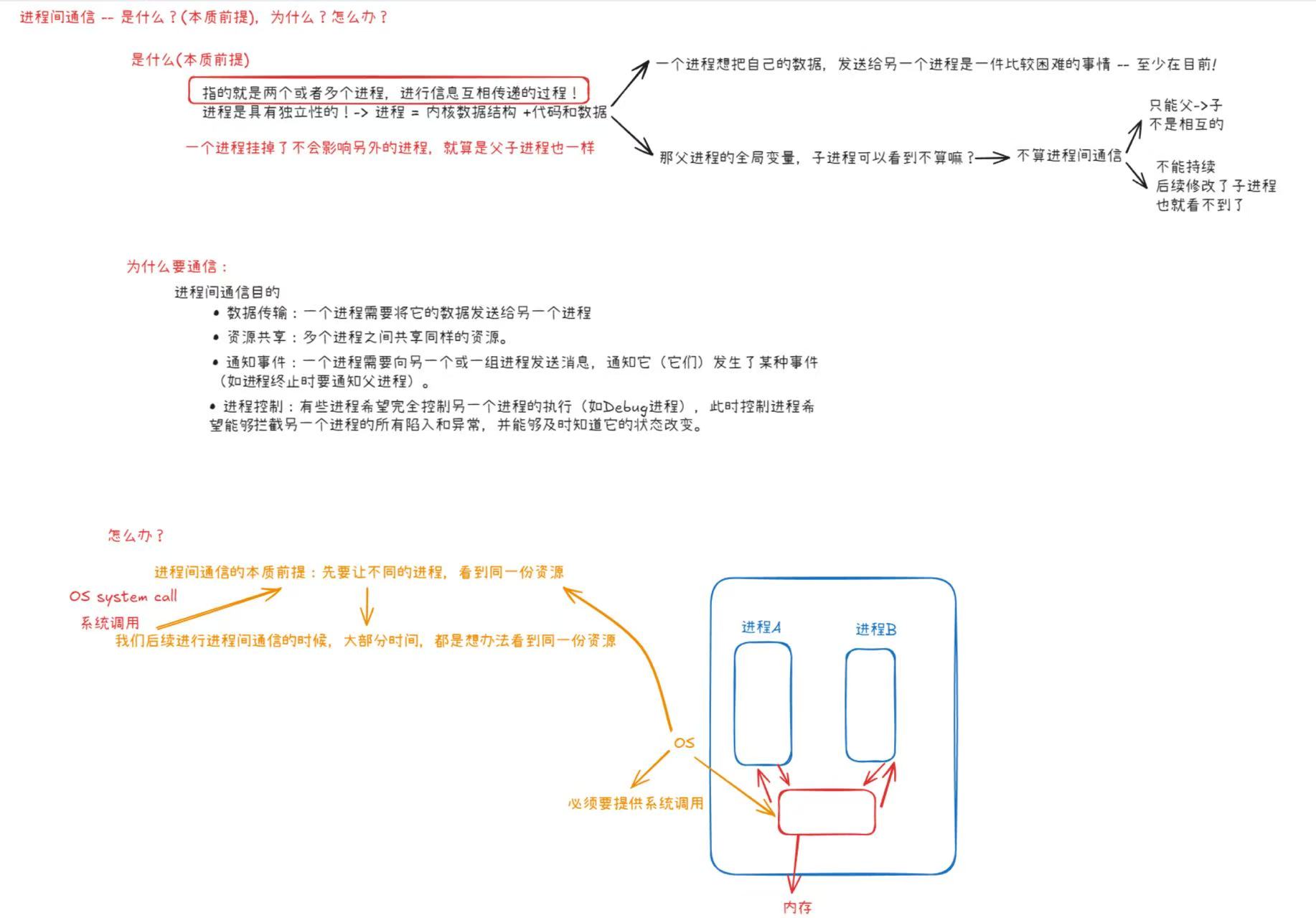 进程间通信的本质是实现进程间的数据交互、资源共享和事件协同,具体可分为四个方面: