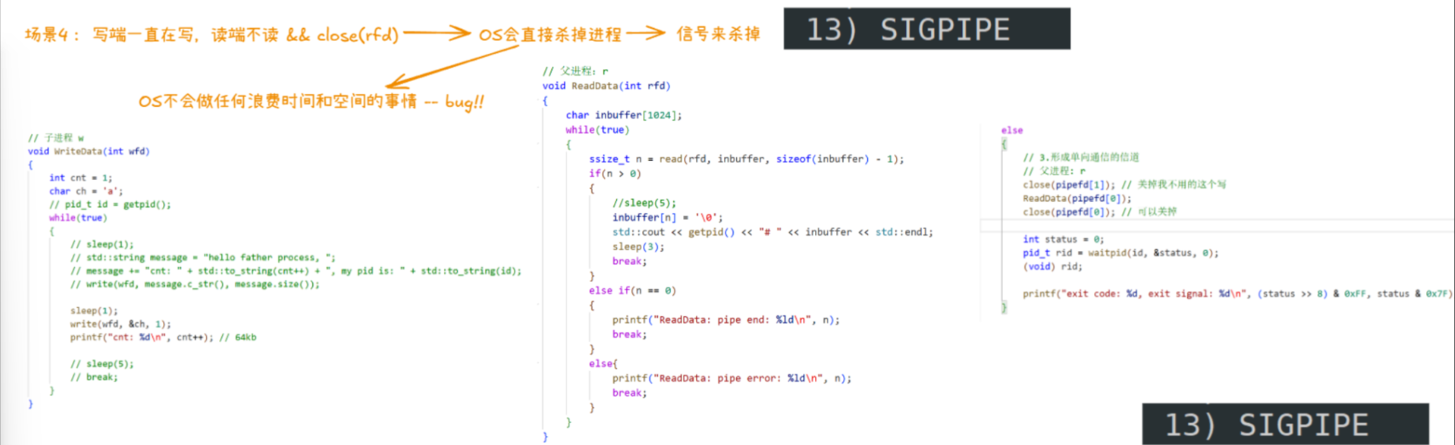 fd[0],仅保留写端fd[1]。 注意下面图中的是父写子读,不过基本逻辑都一样