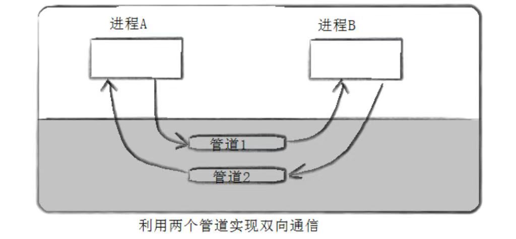 - 半双工通信:数据只能沿一个方向流动,若需双向通信,需创建两个管道;