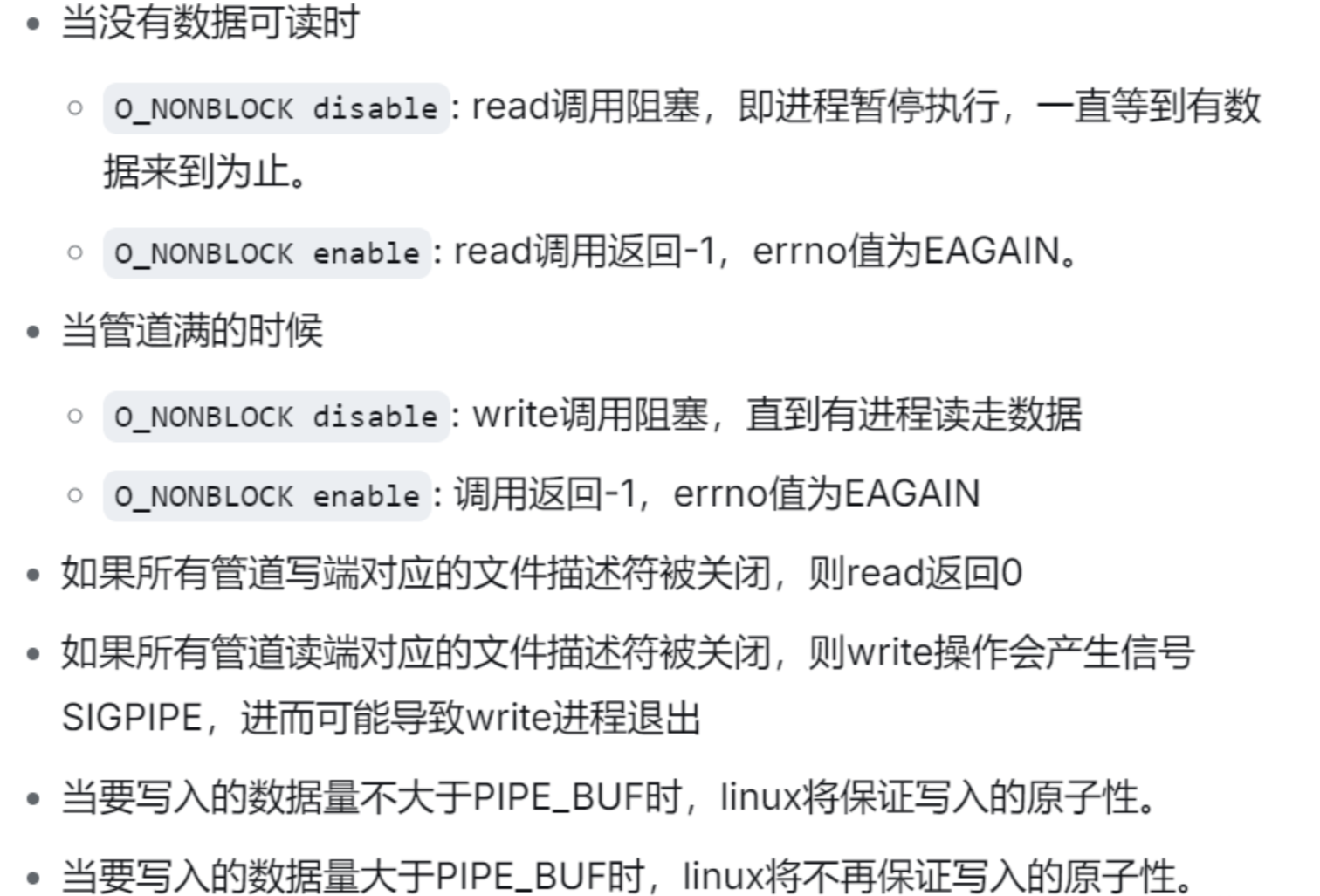 管道的设计贴合 Linux一切皆文件的思想,其核心特性可总结为(在文章的最后我们还会有更全面点的总结,这里可以简单看下):
