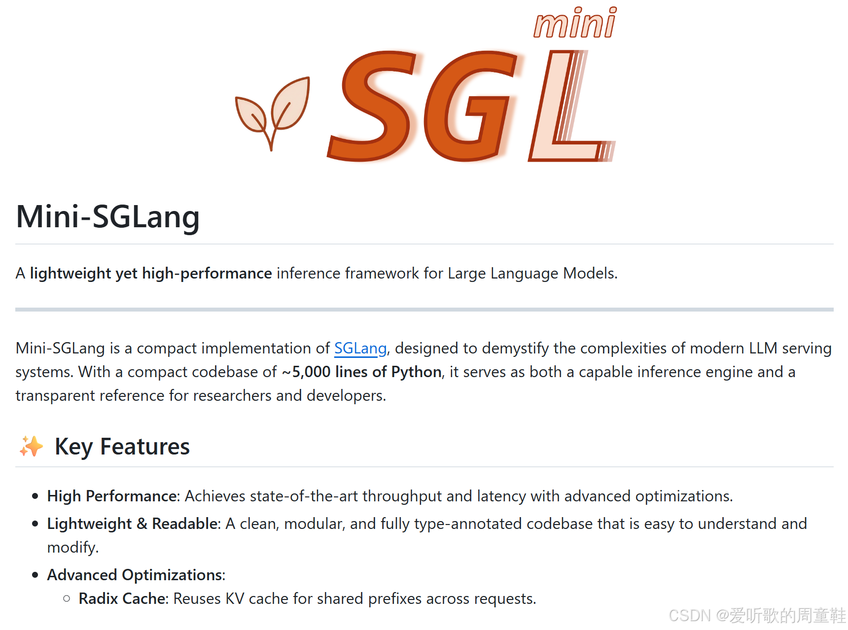 SGLang 对应的精简项目叫做 mini-sglang,其 github 地址是:https://github.com/sgl-project/mini-sglang